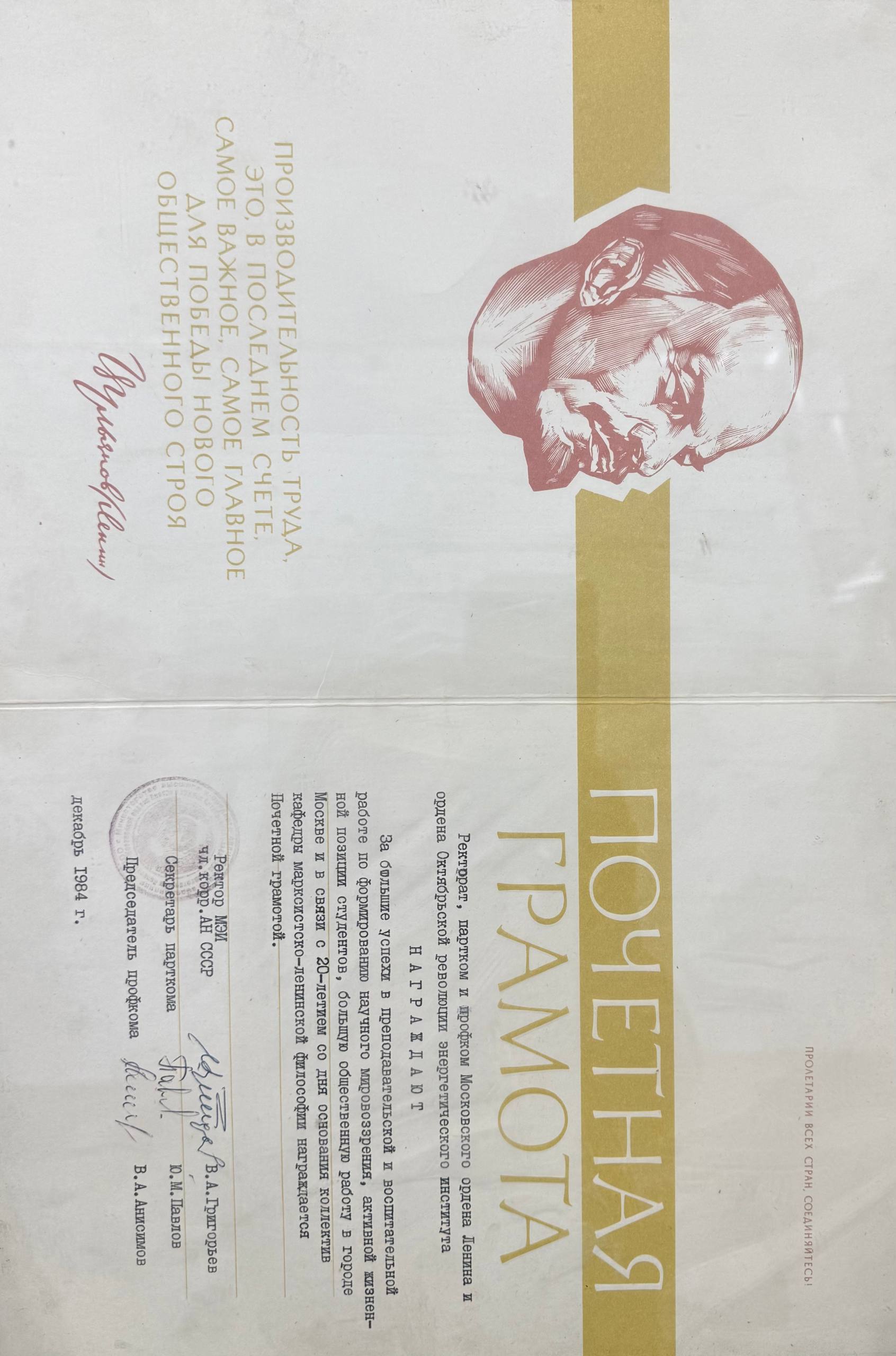 признание её вклада в развитие гуманитарного знания в инженерном вузе.
